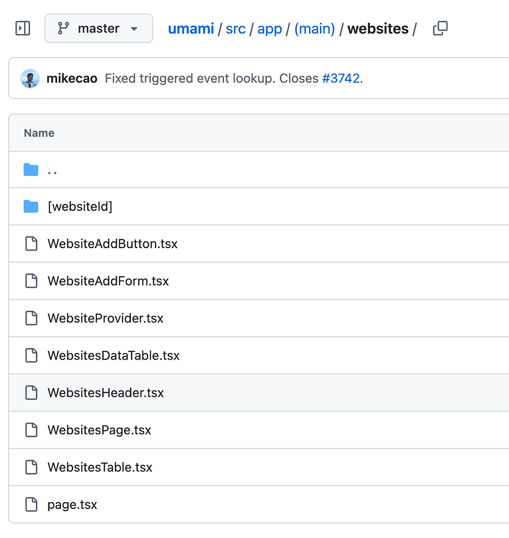 https://github.com/umami-software/umami/tree/master/src/app/(main)/websites