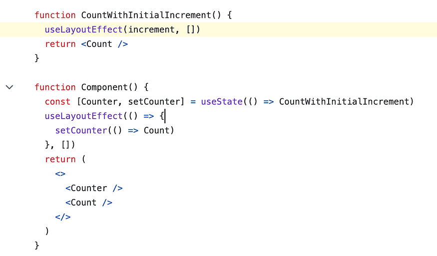 component. This switch ensures that after the layout is painted, the next time the component renders, it doesn’t include the initial increment logic.
